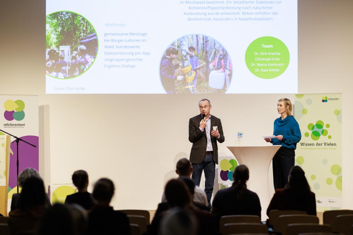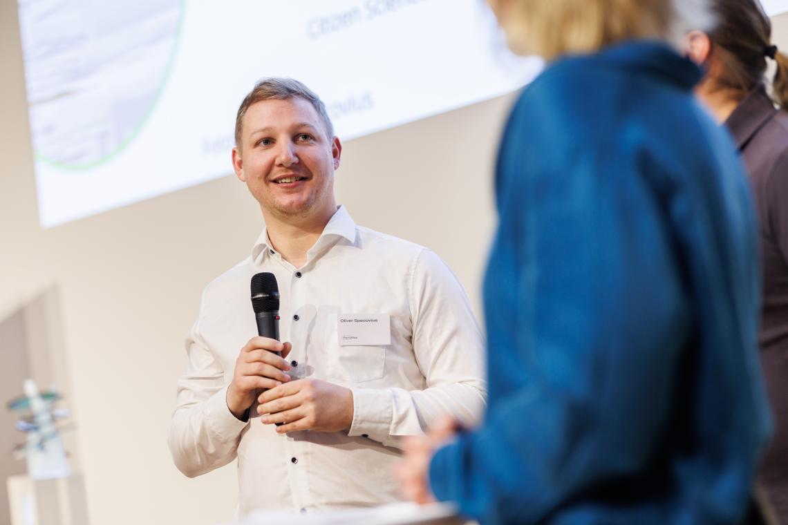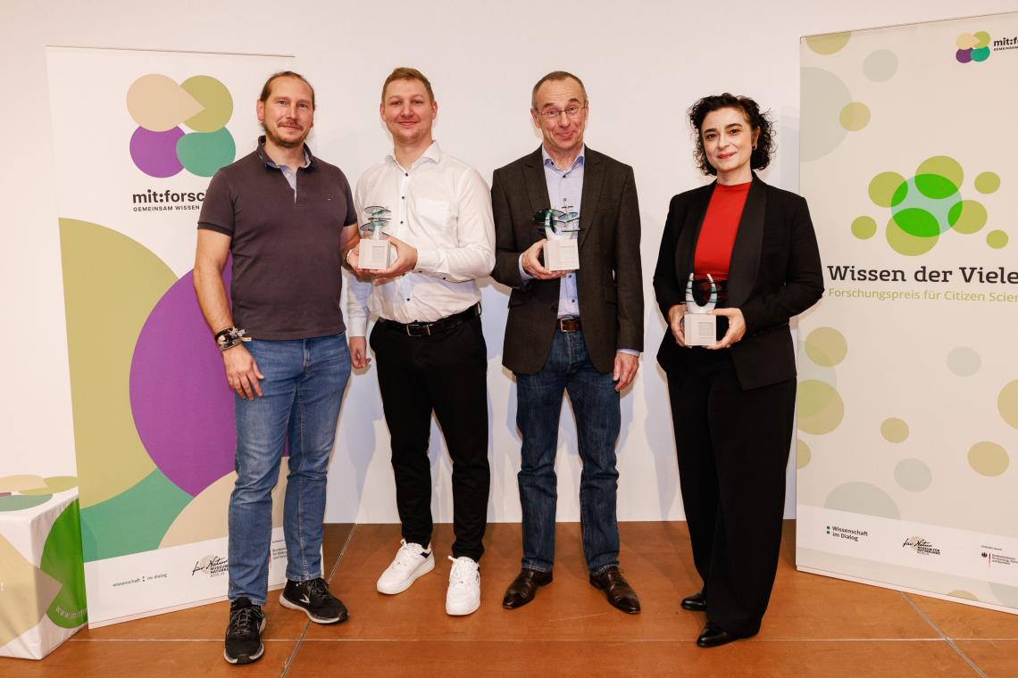Bühne frei für exzellente partizipative Forschung! Am 12. November 2025 haben wir im Rahmen der PartWiss 2025 – Konferenz zur Vernetzung und Stärkung von Partizipation in der Wissenschaft in Leipzig drei Autor*innen mit dem Wissen der Vielen – Forschungspreis für Citizen Science ausgezeichnet. Der Preis würdigt exzellente wissenschaftliche Leistungen, die den Mehrwert partizipativer Ansätze in besonderer Weise deutlich machen, und ist mit Preisgeldern von insgesamt 35.000 Euro dotiert. Wir danken der Jury für die Auswahl der Preisträger*innen und den diesjährigen Laudatorinnen, Prof. Dr. Dr. Martina Schäfer (TU Berlin), Dr. Susanne Hecker (Museum für Naturkunde Berlin) und Dr. Julia von Gönner (Nationales Monitoringzentrum zur biologischen Vielfalt) für ihr Engagement.