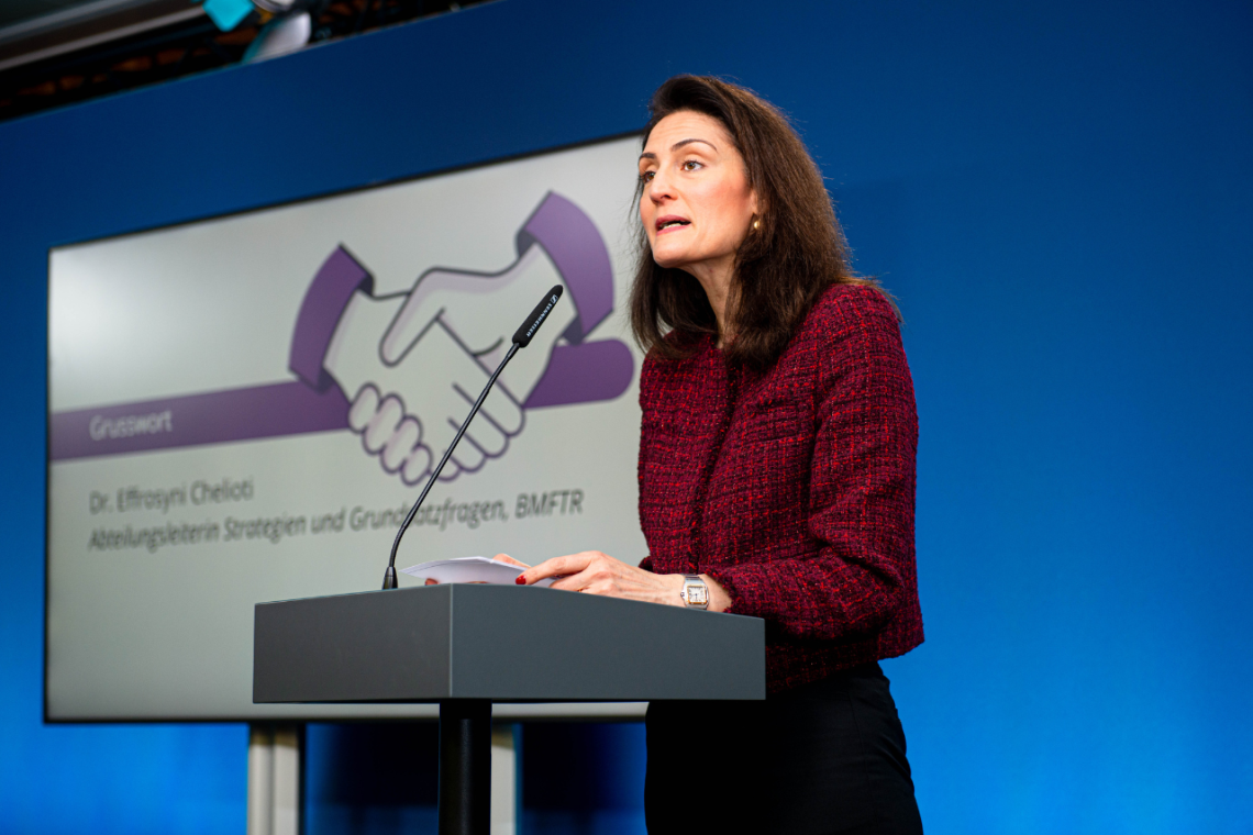 Ein Höhepunkt der Reihe war die feierliche Zertifikatsverleihung am 10. Dezember 2025 im Bundesministerium für Forschung, Technologie und Raumfahrt (BMFTR) mit Dr. Effrosyni Chelioti, Abteilungsleiterin Strategien und Grundsatzfragen. Bei der Abschlussveranstaltung hatten die Teilnehmenden die Gelegenheit, ihre Ideen vorzustellen und sich untereinander sowie mit Vertreter*innen des Ministeriums, den Referent*innen der Module und weiteren Expert*innen für partizipative Forschung zu vernetzen.